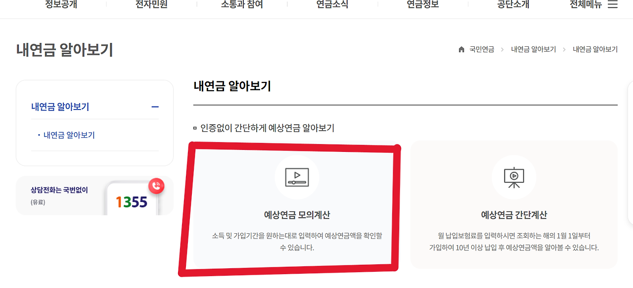 국민연금 조기수령조건을 확인하였다면 본인이 국민연금을 얼마나 받을 수 있을지 확인해보고 싶으실텐데요, 국민연금 예상 수령액은 국민연금 홈페이지를 통해 쉽게 확인할 수 있으니 궁금하신 분들은 아래를 통해 확인해보시길 바랍니다.